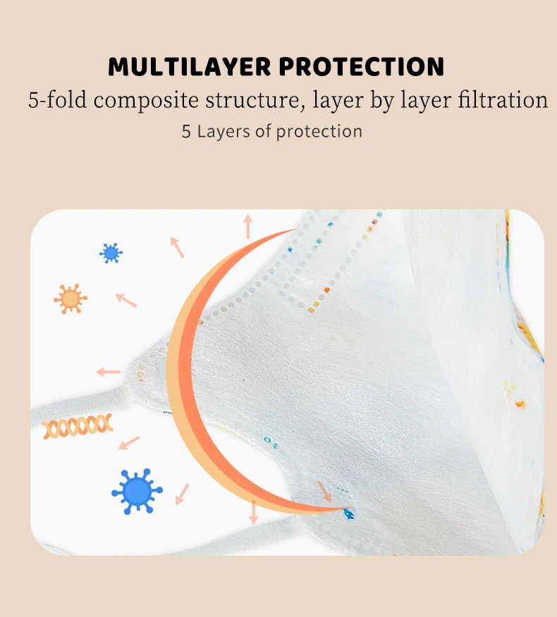 Маска для лица KN95 для детей 4 слоев, многоразовая дышащая Защитна...