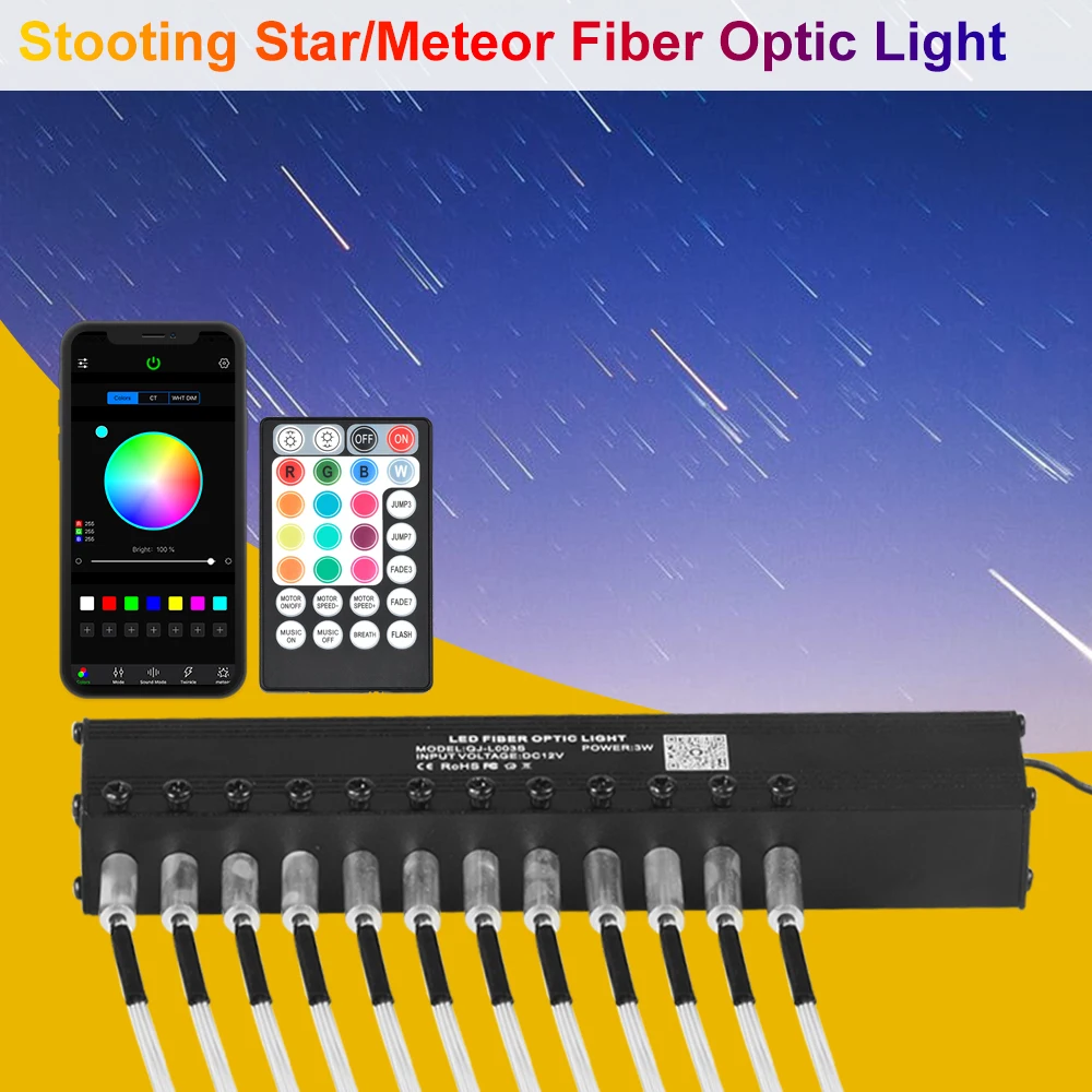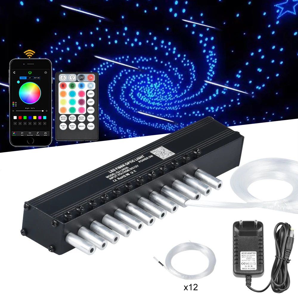 3 Вт 12 светодиодов s Bluetooth приложениедистанционное управление Светодиодный двигатель стрельба метеоритный источник света с конечным светящимся оптоволоконным кабелем