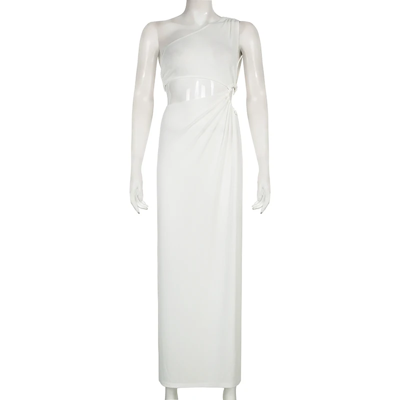 Женское платье-макси с круглым вырезом, асимметричным вырезом и разрезом сбоку