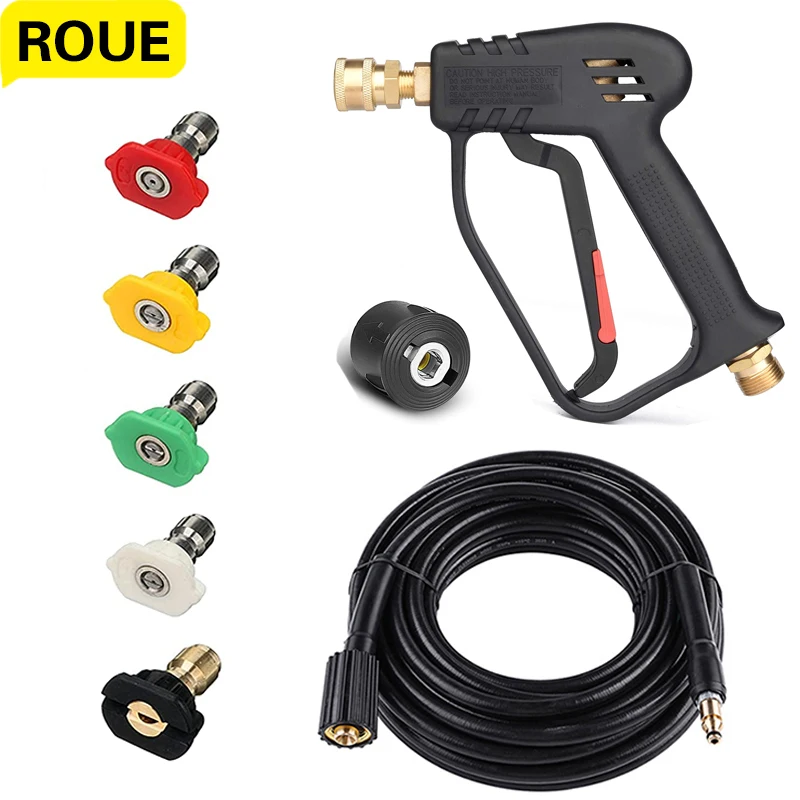 * Поставляется с 5 различными сменными насадками, 0 °, 15 °, 25 °, 40 ° и 60 ° градусов* Латунный быстроразъемный соединитель для быстроразъемного сопла* Пистолет Номинальный до 280 бар-4000 PSI, максимальный поток 25 л/м, максимальная температура 150 градусов* Блокировка триггера* M22 Штекерный соединитель поставляется в соответствии со стандартом-подходит прямо к вашему шлангу мойки давления M22