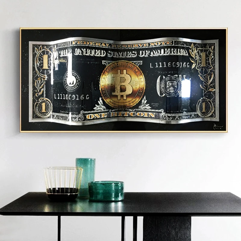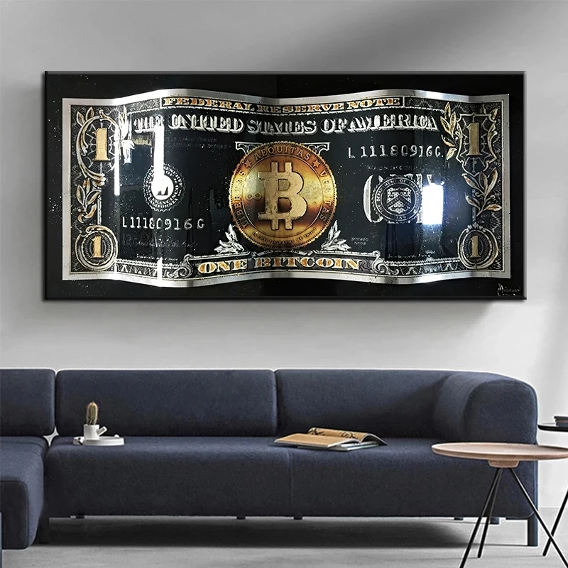 Вдохновляющие деньги Холст Картина один Биткойн доллар плакаты и пр...