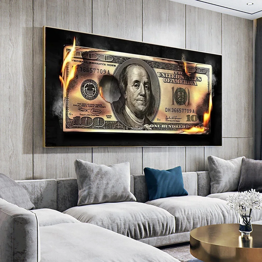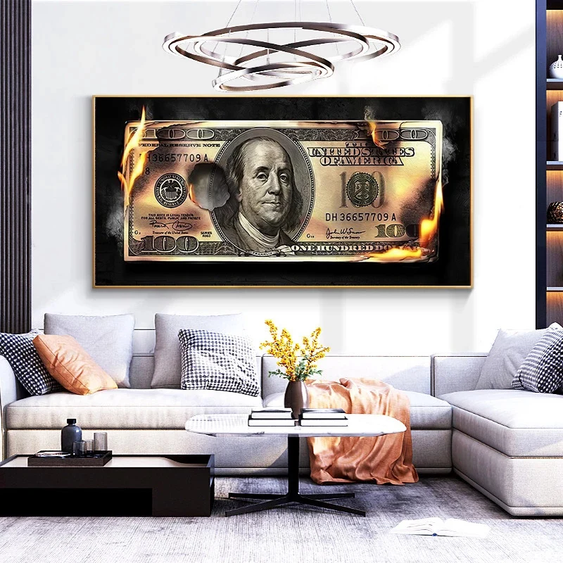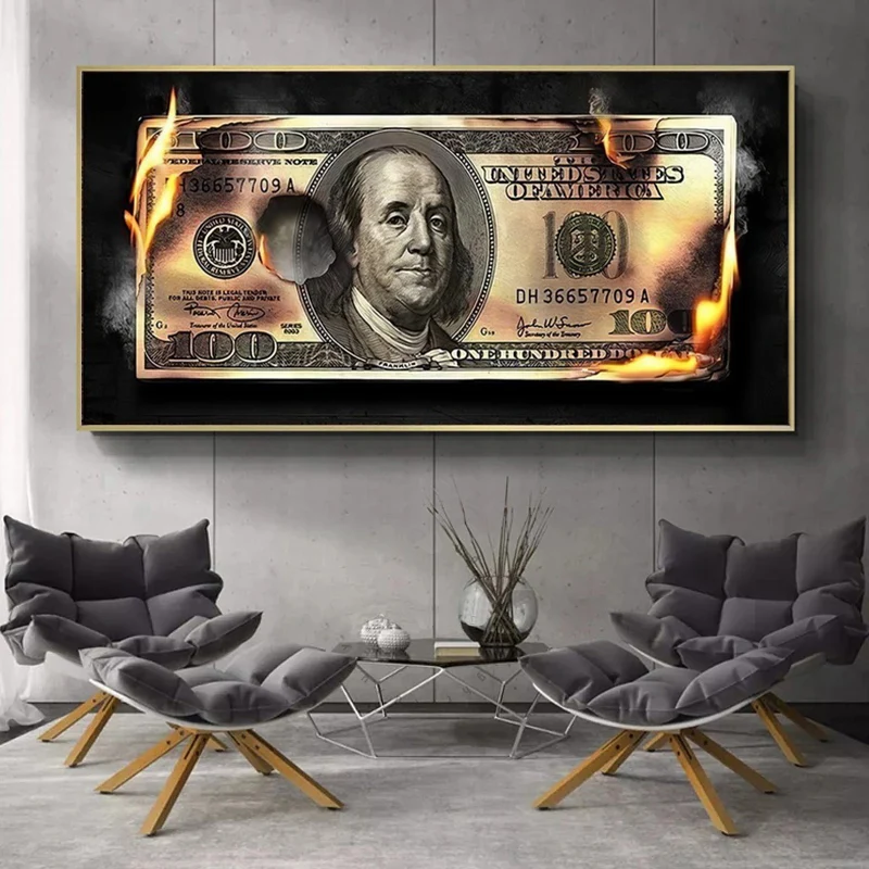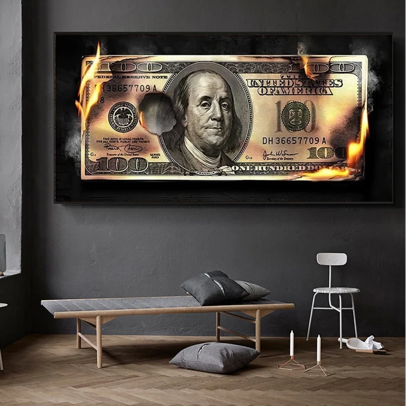 Картина на холсте с изображением сжигающего доллара, 100 долларов