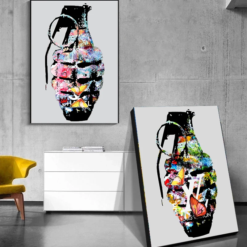 Граффити холст ручная граната плакаты и принты Холст Поп-улица настенные картины для гостиной домашний Декор картина