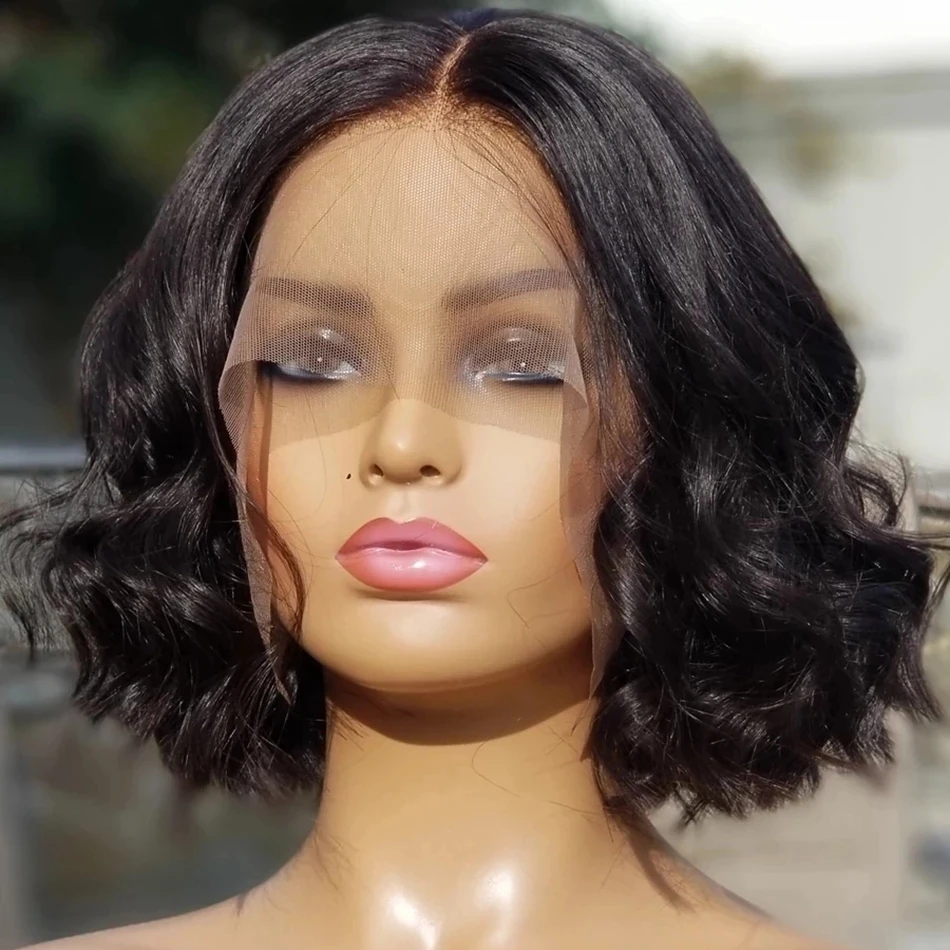 Scheherezade короткие бобы свободные волнистые синтетические волосы кружевные передние парики для чернокожих женщин с средней частью натуральные волосы без клея парик