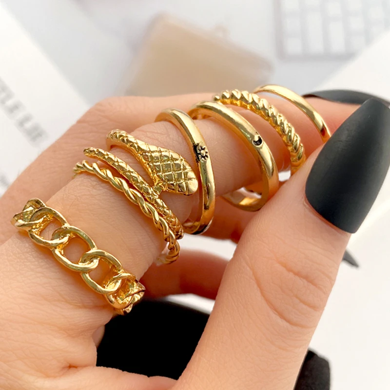 Винтажный золотистый набор колец 17KM в виде змеи, животных, для женщин и мужчин, кольца в стиле панк, луна, звезда, цепочка, кольца 2022, трендовые ювелирные изделия, подарки