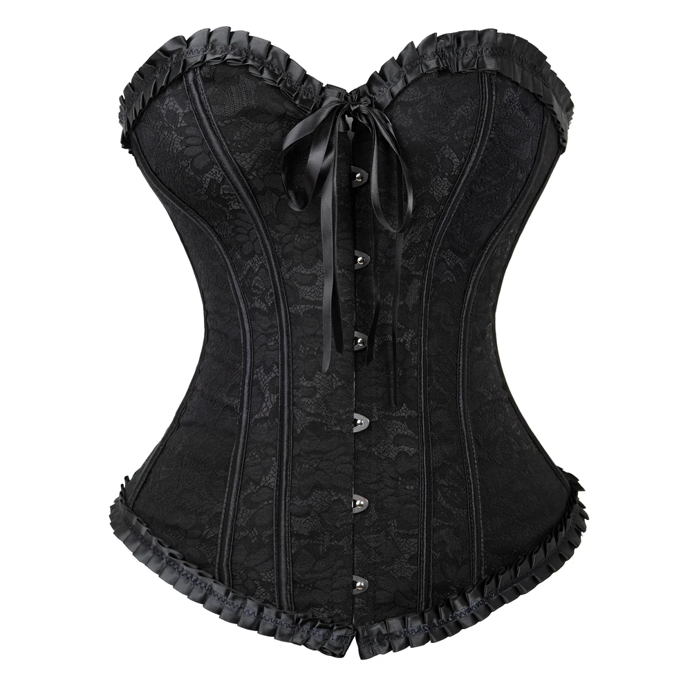 Женские Корсеты с цветочным рисунком, черный кружевной корсет, корсет с завышенной талией, бюстье, викторианская стимпанк Одежда, тонкий корсет размера плюс
