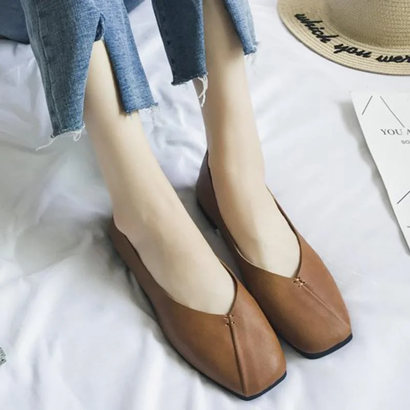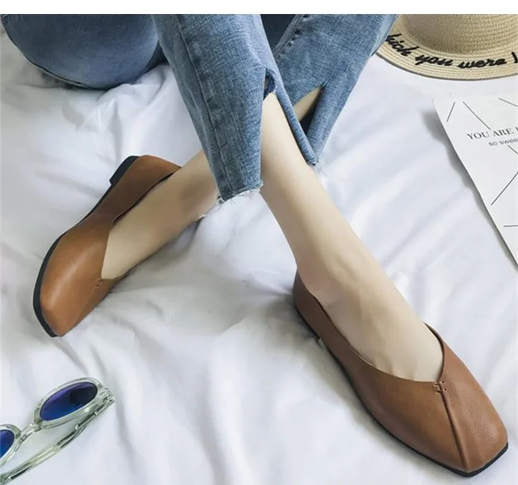 Женские кожаные туфли; Модные женские рабочие туфли на плоской подо...