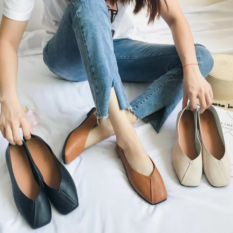 Женские кожаные кроссовки без шнуровки, прочные балетки для сада и ...