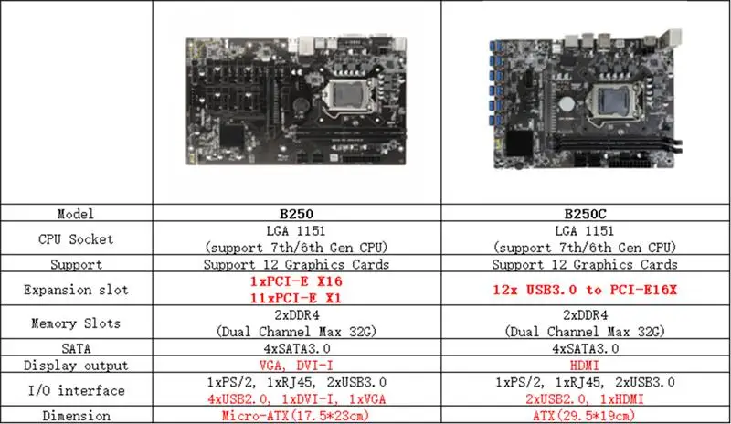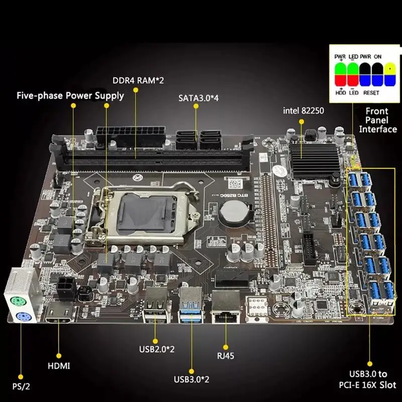 Набор материнской платы для майнинга BTC B250C LGA1151 12 USB3.0 к ...