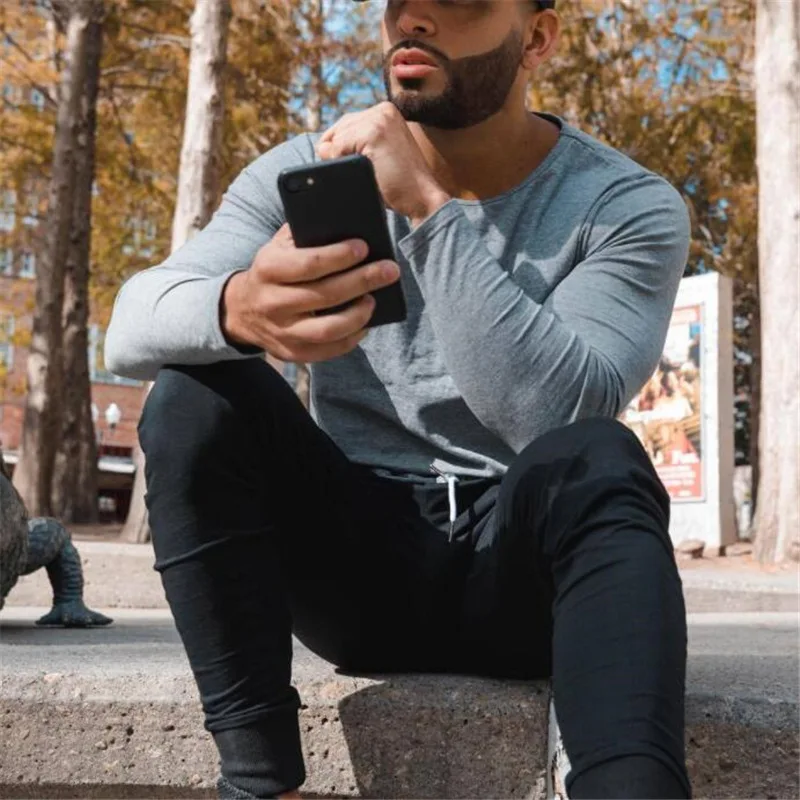 Мужская футболка для фитнеса с длинным рукавом, новая мода 2021, Ве...
