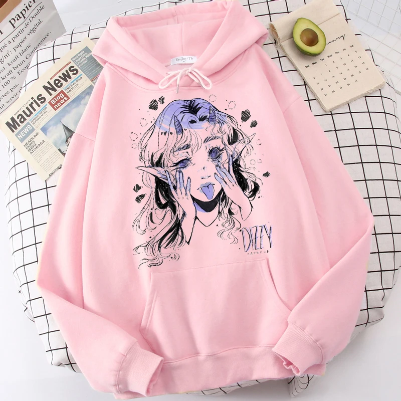 Милые аниме озорная девушка мультфильм Y2k толстовки в стиле ретро Харадзюку Готическая Толстовка с длинным рукавом Топы с принтом в стиле Панк пуловер kleiнаг