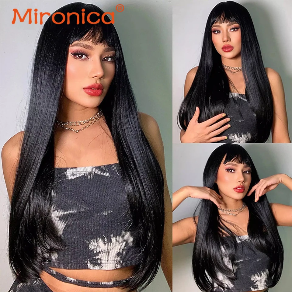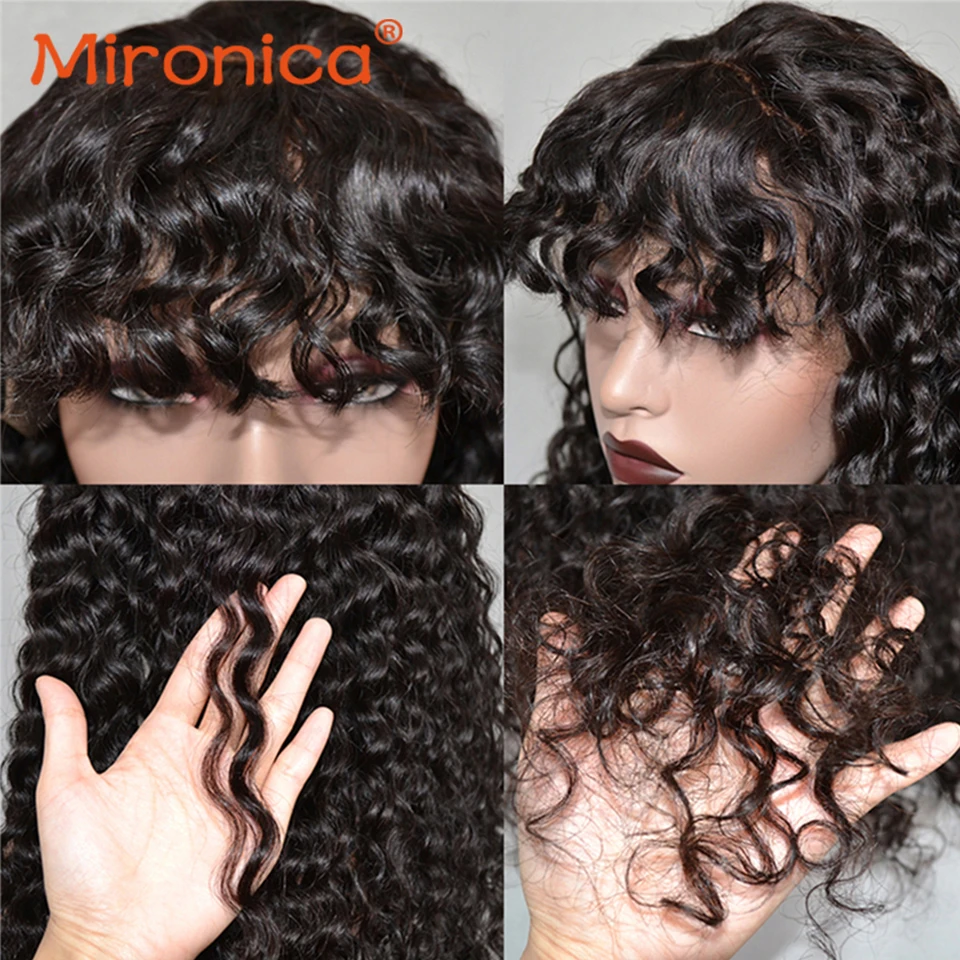 Парик из 100% человеческих волос Bone Staight с челкой, парик свободного покроя с глубокой волной, парик для женщин, бразильские волосы Remy, парик натурального цвета