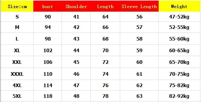 Азиатский размер: M,L,XL,2XL,3XL,4XL,5XL.
