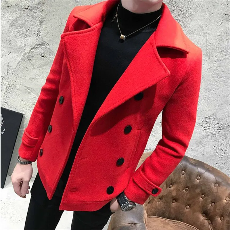 Новая модная мужская двубортная ветровка, однотонное тонкое Короткое шерстяное пальто, Зимняя Повседневная теплая ветровка, куртки