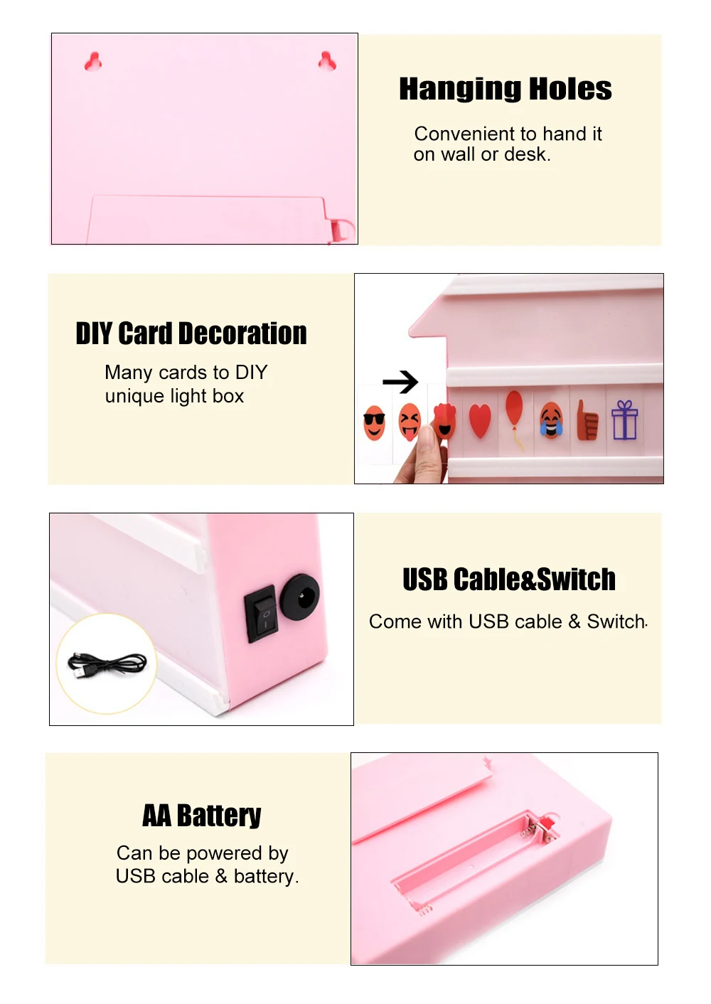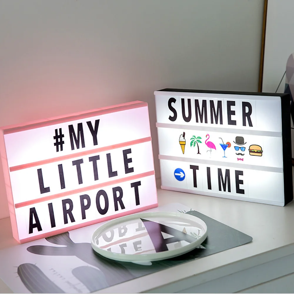 Комбинированный светодиодный светильник с USB-аккумулятором, A4, A5, A6, для самостоятельной сборки, с буквами, символами, знаками, карточками, украшением, светодиодный ящик для сообщений, розовый, черный, синий