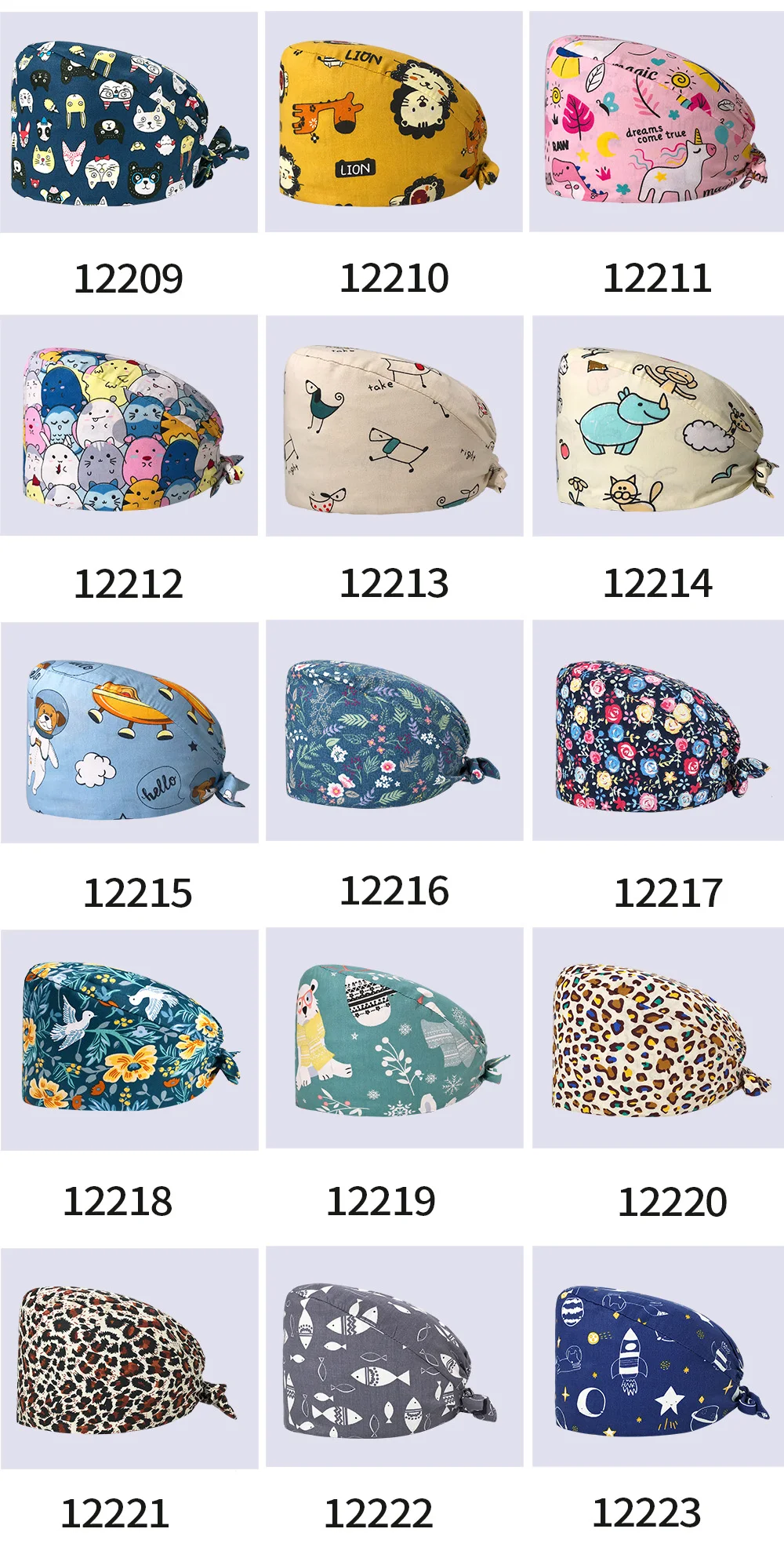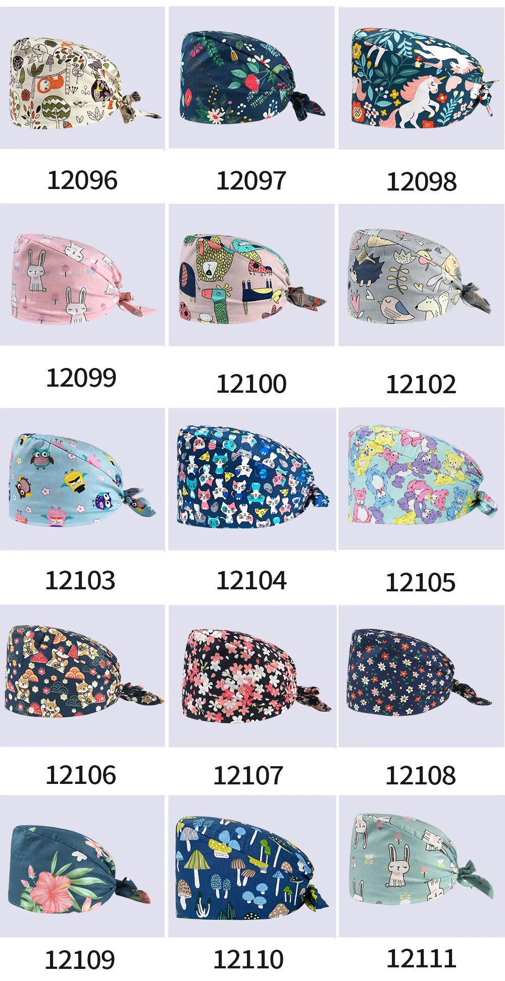 Шапка для медсестры с цветочным узором, регулируемая шапка с разным...