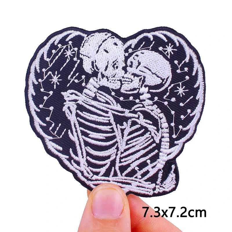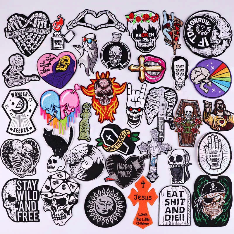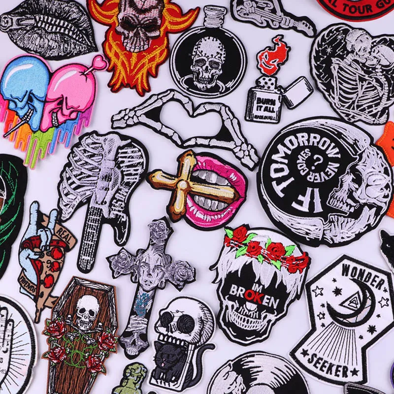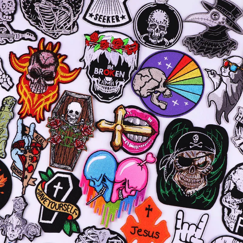 Нашивки в стиле панк с черепом для одежды, термоклейкие нашивки, готические термоклейкие нашивки для одежды, самодельные вышитые искусственные нашивки со скелетом