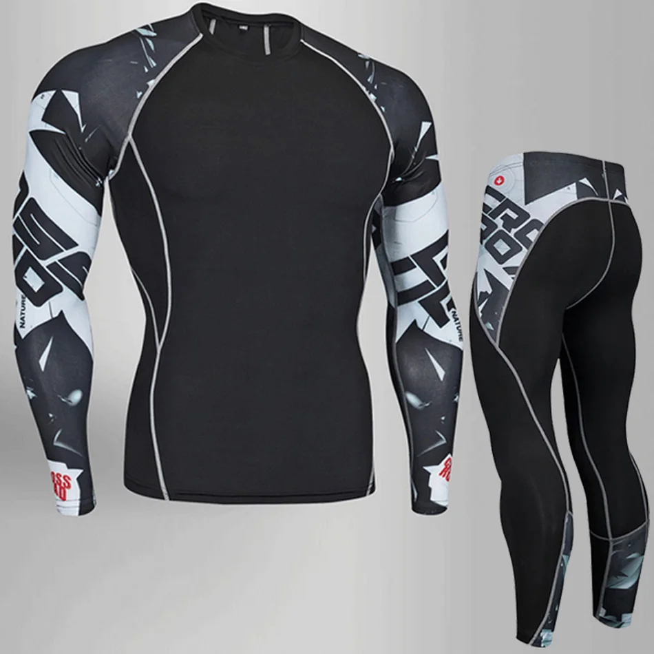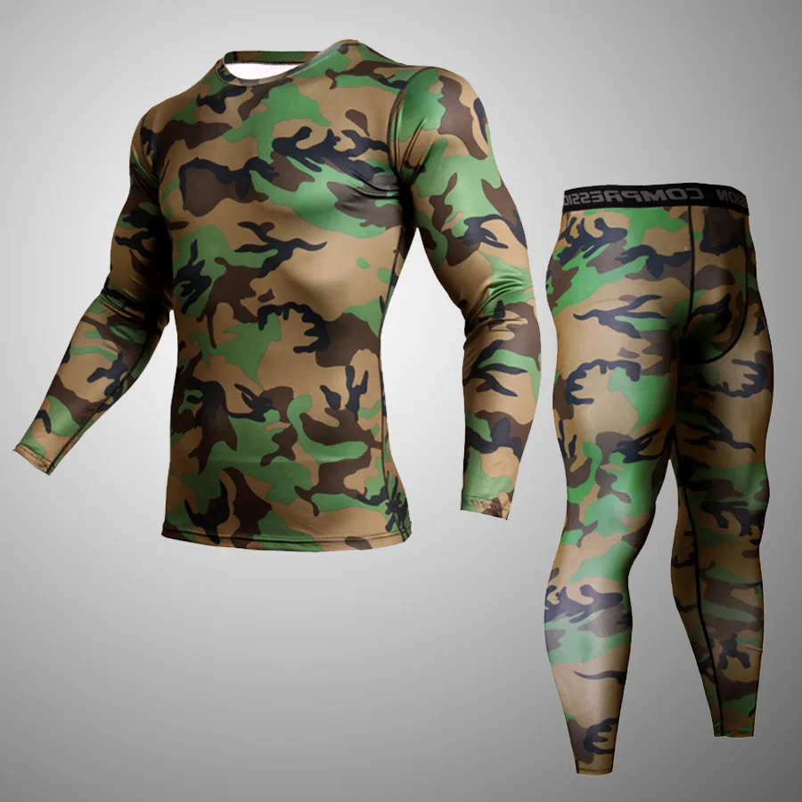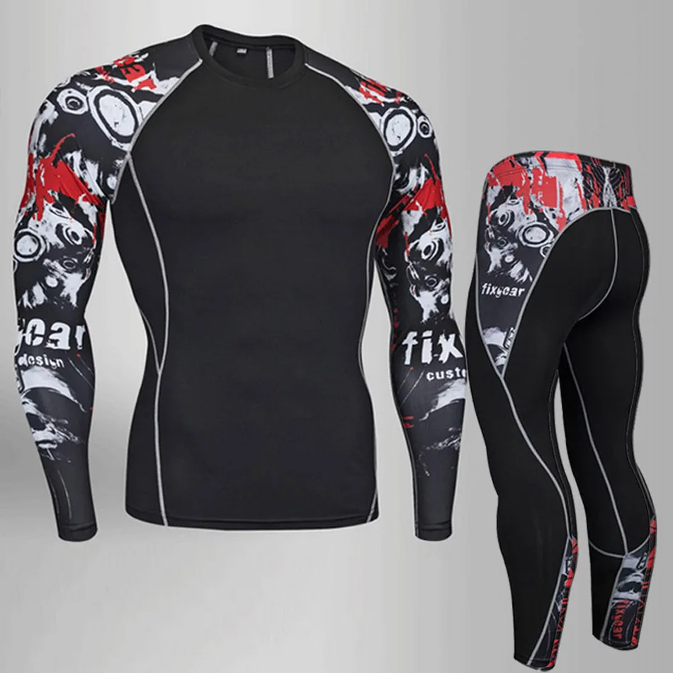 Компрессионное нижнее белье мужское зимнее термобелье ММА 3D Волк Бодибилдинг футболка рашгарда леггинсы 2 шт. спортивный костюм для мужчин
