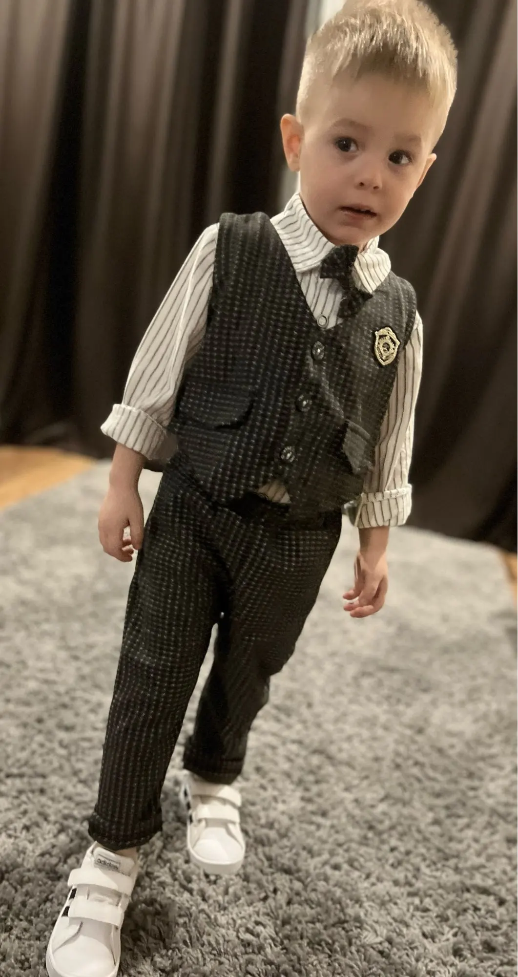 Костюм - просто топ! Як тільки розпакували, одразу одягли і пішли у гості. Цей метелик просто зводить мене з розуму! Рубашка хлопкова, дуже приємна до тіла! Штанці, жилетка і метелик - з м’якої тканини. Щось схоже на велюр, чи щось таке) ниточки ніде не стирчать, виглядає шикарно ! Рекомендую. #Mark_recommends