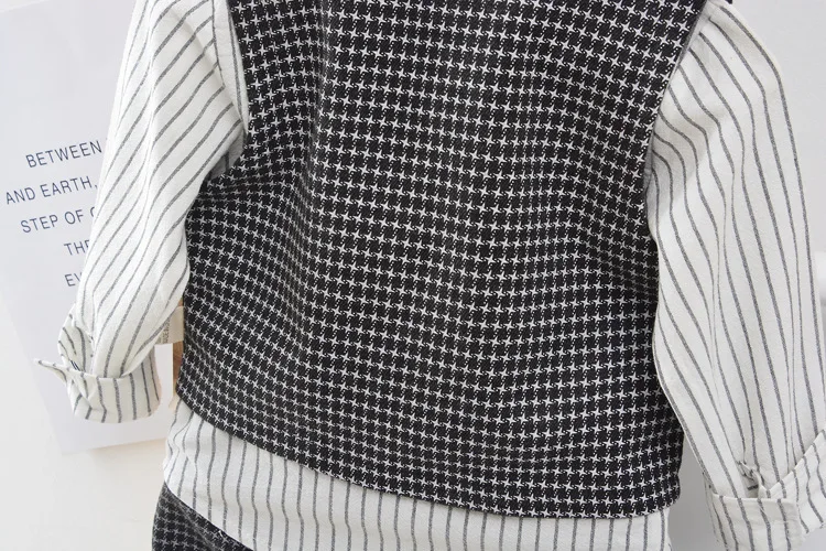 Детский джентльменский костюм, элегантный повседневный костюм для мальчиков, рубашка в полоску, жилет и штаны на день рождения, свадьвечерние вечеринку