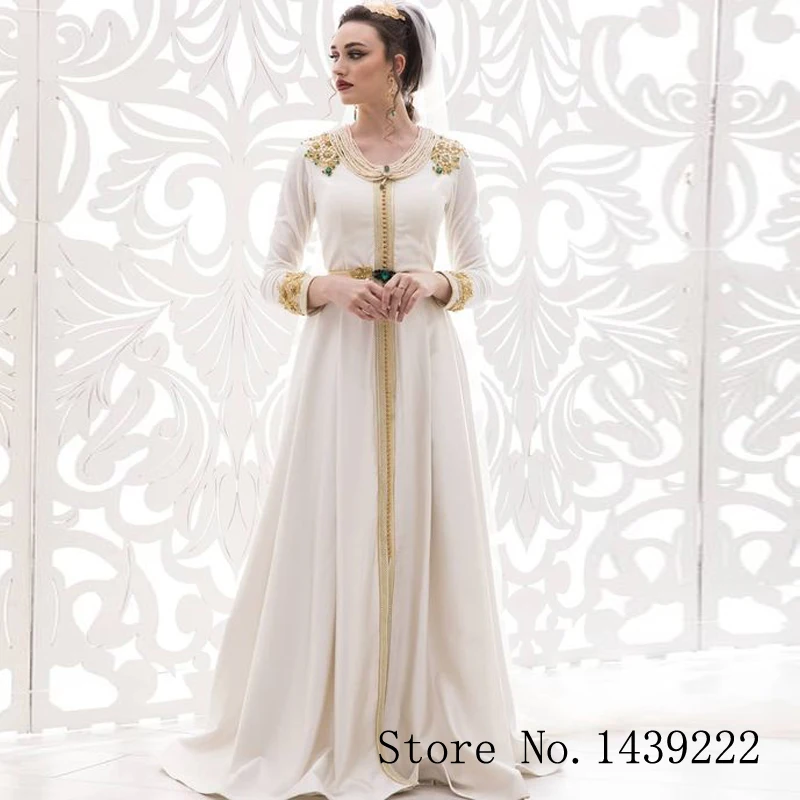 Белое Атласное Вечернее платье Дубаи, марокканский кафтан, длинное женское, для Саудовской, арабской, мусульманвечерние вечеринки, для особых случаев