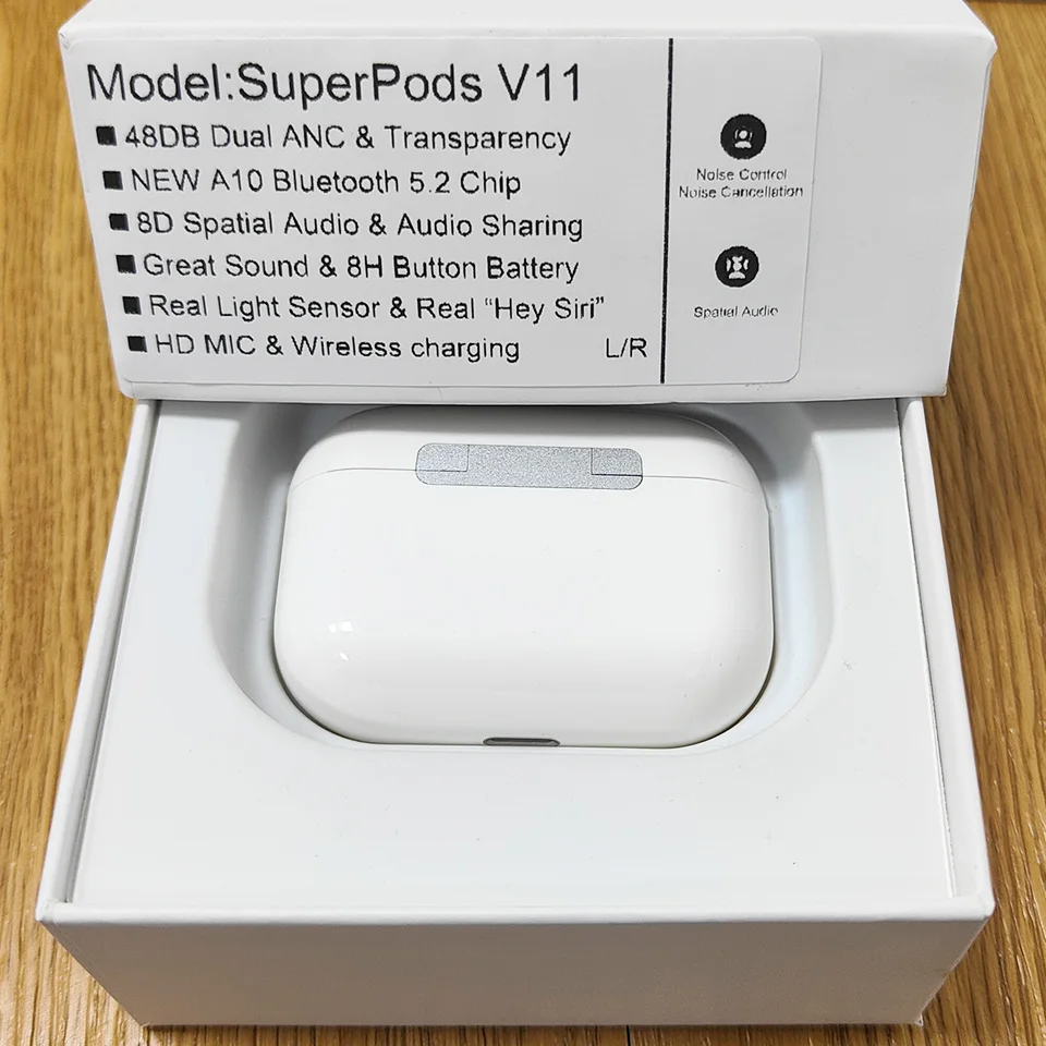 Примечание: Если вы покупаете больше <;br/>, чем 2 шт., вы можете получить скидку 3%!<;br/>SuperPods V7.5:A7 Chip (Dual Mic)<;br/>SuperPods V10:A8 Chip (3 Mic)<;br/>SuperPods V11: новейший чип A10 (3 микрофона)<;br/>V11 Особенности: каждый наушник имеет 3 микрофона, И пара наушников имеет 6 микрофонов.<;br/> в дополнение к dual hybird ANC,real hey siri,steel battey, время прослушивания музыки 6-8 часов <;br/> Используйте оригинальный шарнир оригинальной оболочки.<;br/> Futures:<;br/> Высококачественный Оригинальный чехол с герметичным светодиодом <;br/> Изменение имени + позиционирование GPS;<;br/> Поддержка различных беспроводных зарядных устройств;<;br/> Обновите чип Bluetooth 5,2 <;br/> пространственное аудио и amp; аудиовыход realy work<;br/>Real Call Siri<;br/> Стальные вентиляционные отверстия и металлическая петля <;br/> крышка обратного магнита <;br/>Squeeze Сенсор;<;br/> Вызов для прослушивания песен в течение 6-8 часов, длительный срок службы батареи;<;br/> Автоматическая загрузка/Автоматическое Сопряжение;<;br/> Идеально подходит для iOS/Android и всех мобильных телефонов;<;br/> Режим прозрачности;<;br/> 15 высококачественный динамик;<;br/>* Новый * сопряжение всплывающих окон <;br/>HIFI стерео супер качество звука;<;br/>Hybrid ANC активное шумоподавление (двойной ANC микрофон);<;br/> Если вам нужно больше фотографий, пожалуйста, свяжитесь с нами! <; Br/> Мы фабрика, поддержка OEM, полная продажа, Прямая поставка.