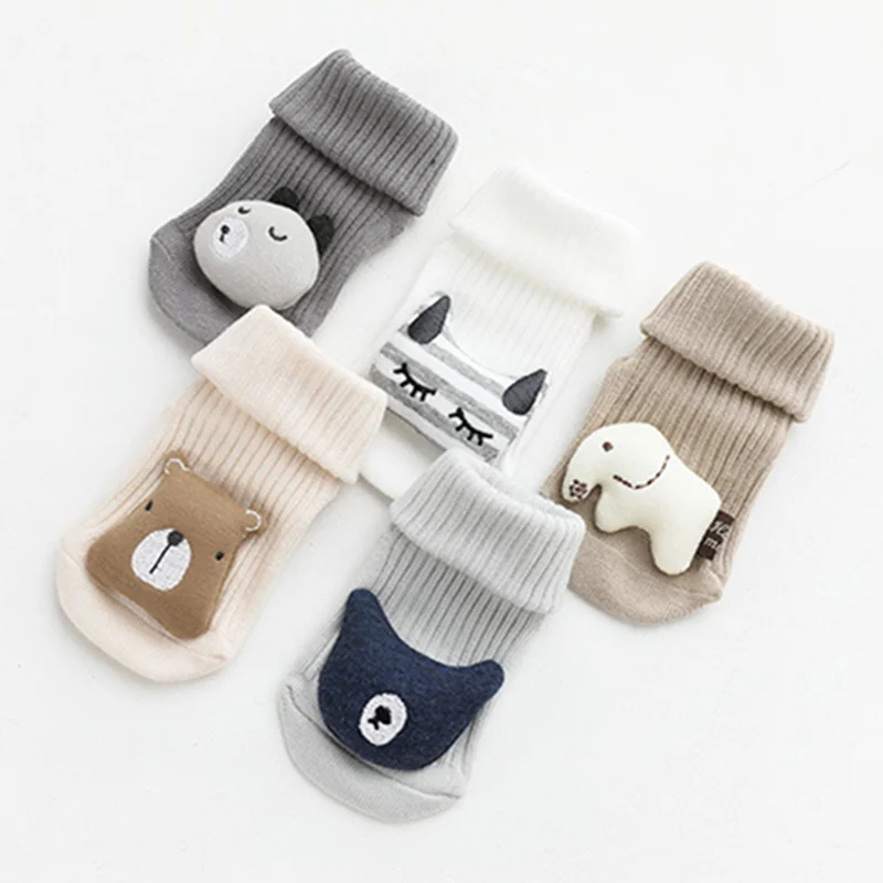 Теплые хлопковые детские носки, осенне-зимние носки для новорожденных с мультяшным рисунком для маленьких мальчиков и девочек, нескользящие носки для пола для малышей, весна