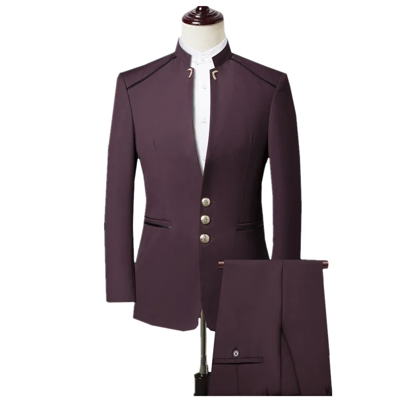 (Блейзер + брюки + жилет) 2021 Новый однобортный мужской костюм из 3 предметов китайские смокинги для жениха воротник-стойка облегающий свадебный костюм