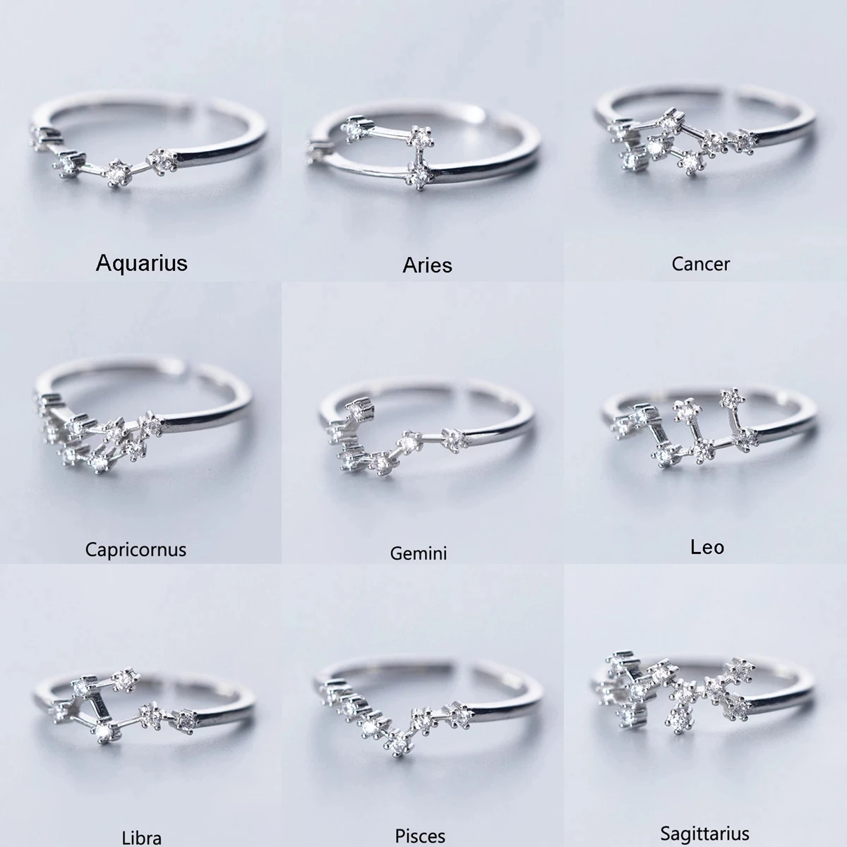 Минималистичные инкрустированные кубические циркониевые кольца 12 созвездий для женщин Знаки зодиака Регулируемые Модели серебряного цвета ювелирные изделия