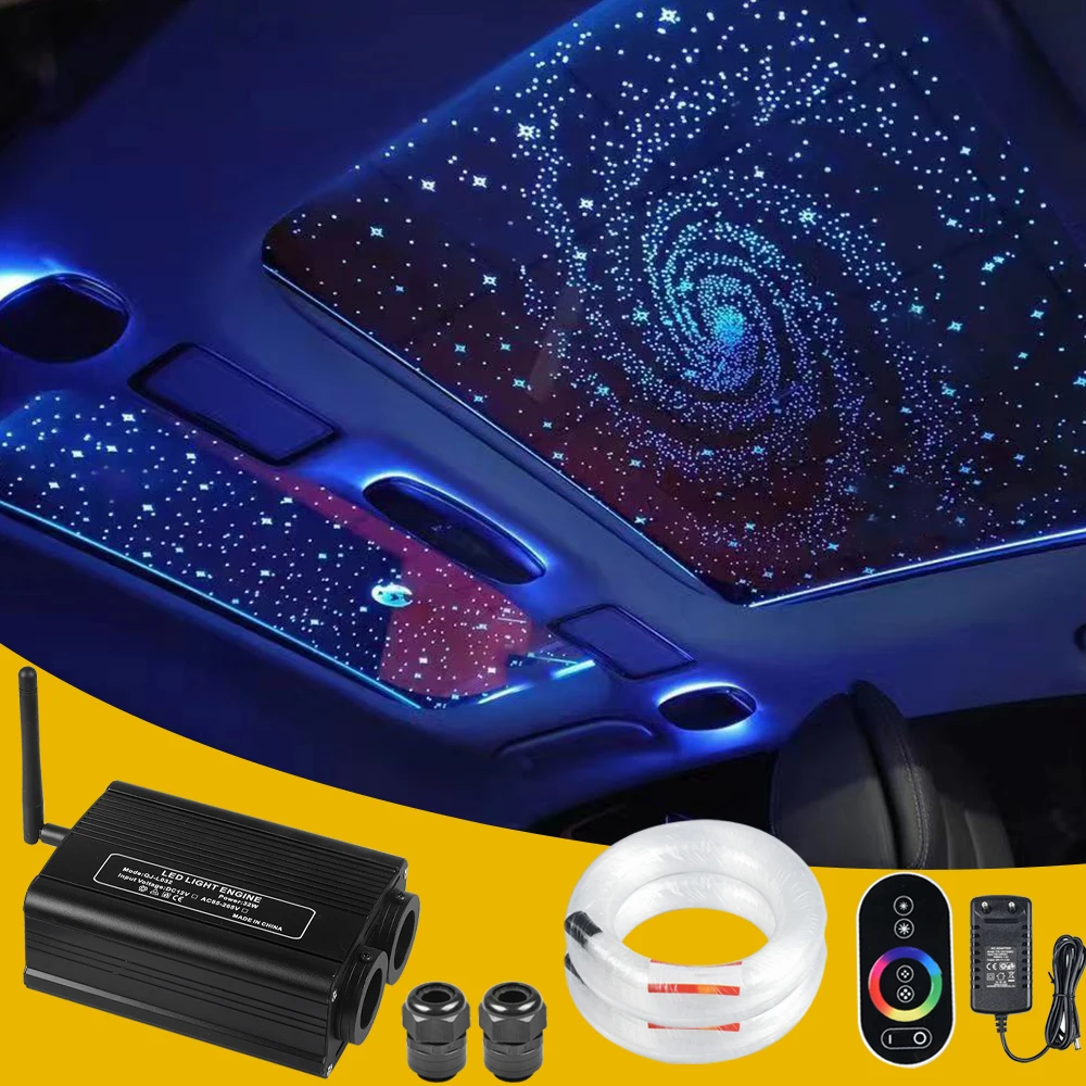 RGB-подсветильник ка для двигателя, 32 Вт, Двойные головки с радиочастотным сенсорным дистанционным управлением, светодиодный источник света из оптического волокна для украшения автомобильной крыши, звездного неба