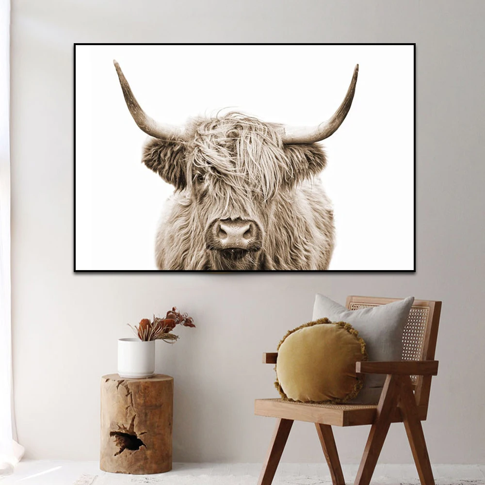 Скандинавский постер с изображением животных, буйвола, Картина на холсте, Коричневая Корова, бык, настенное искусство, украшение для гостиной, картины, домашний декор