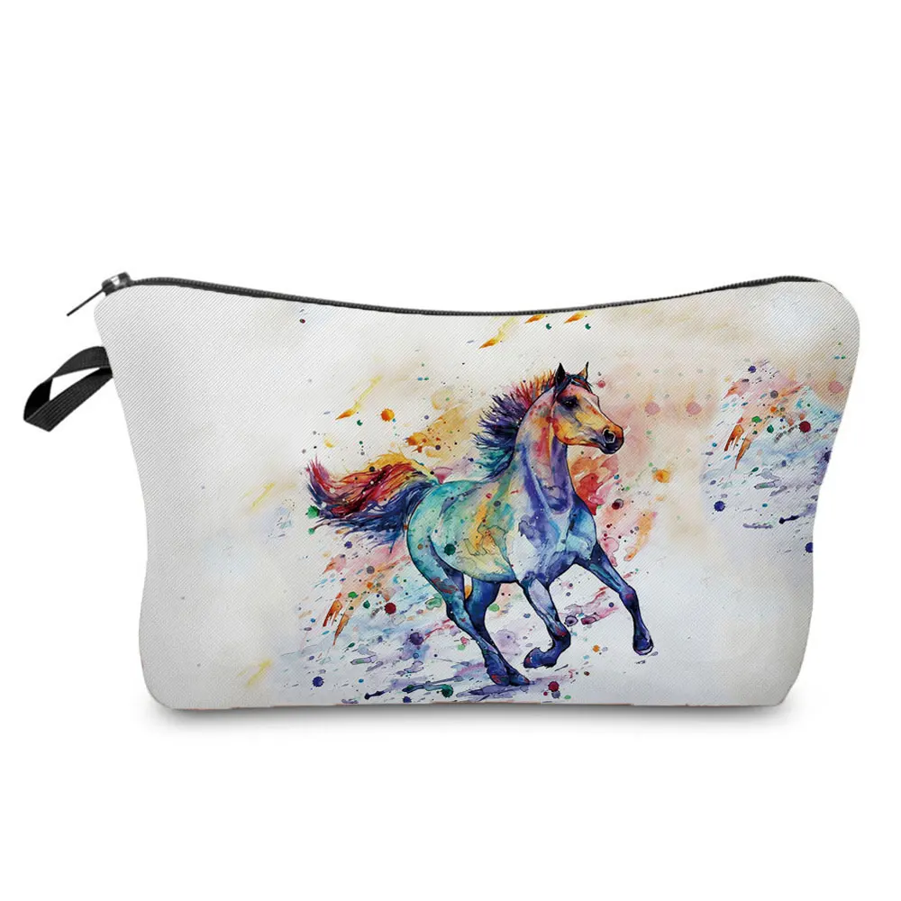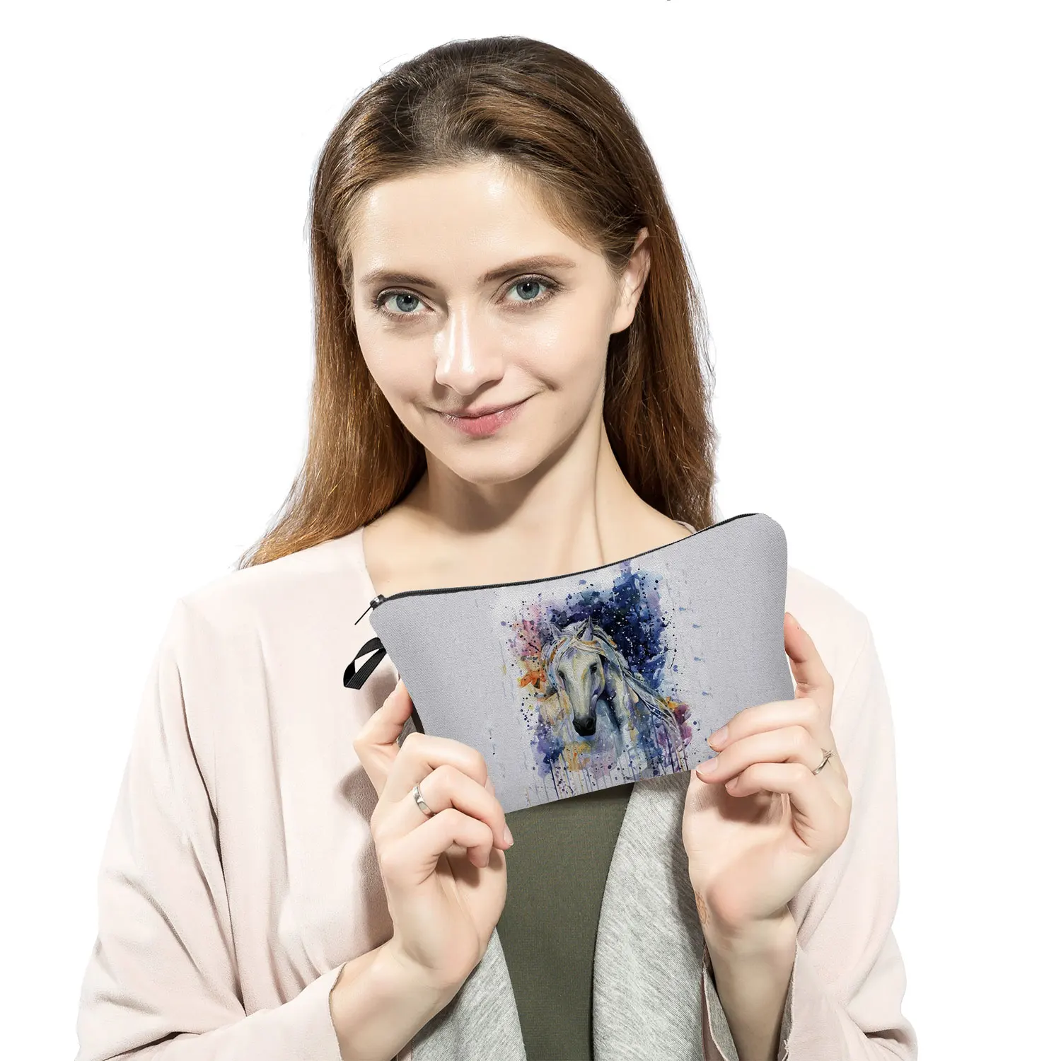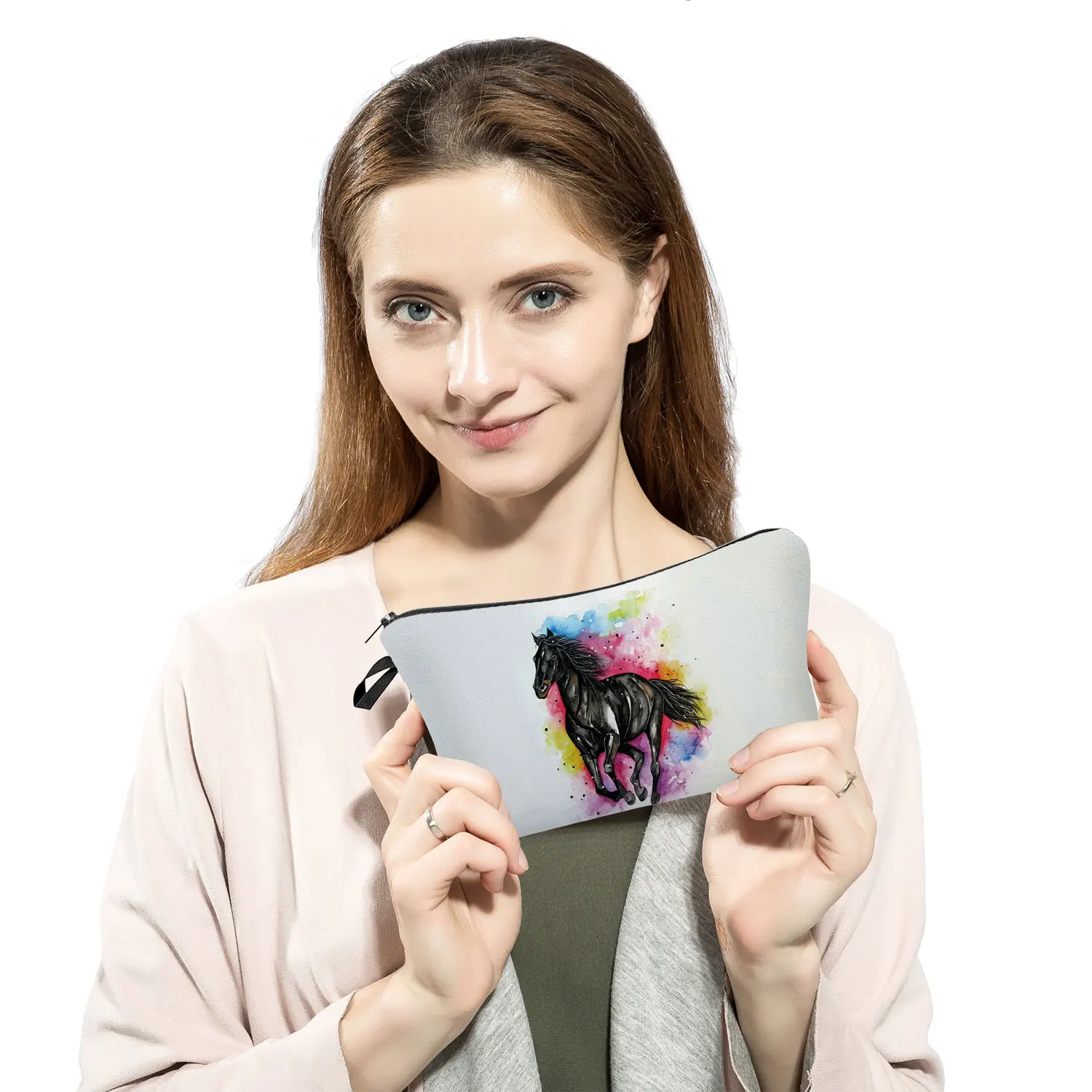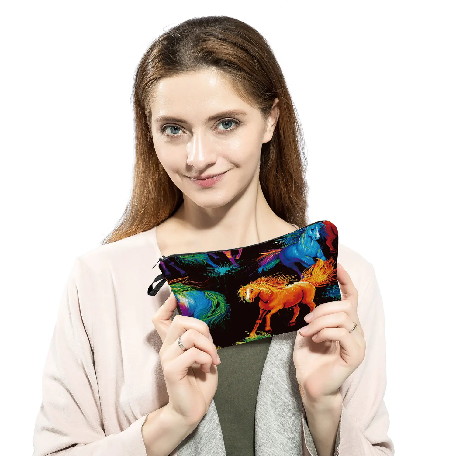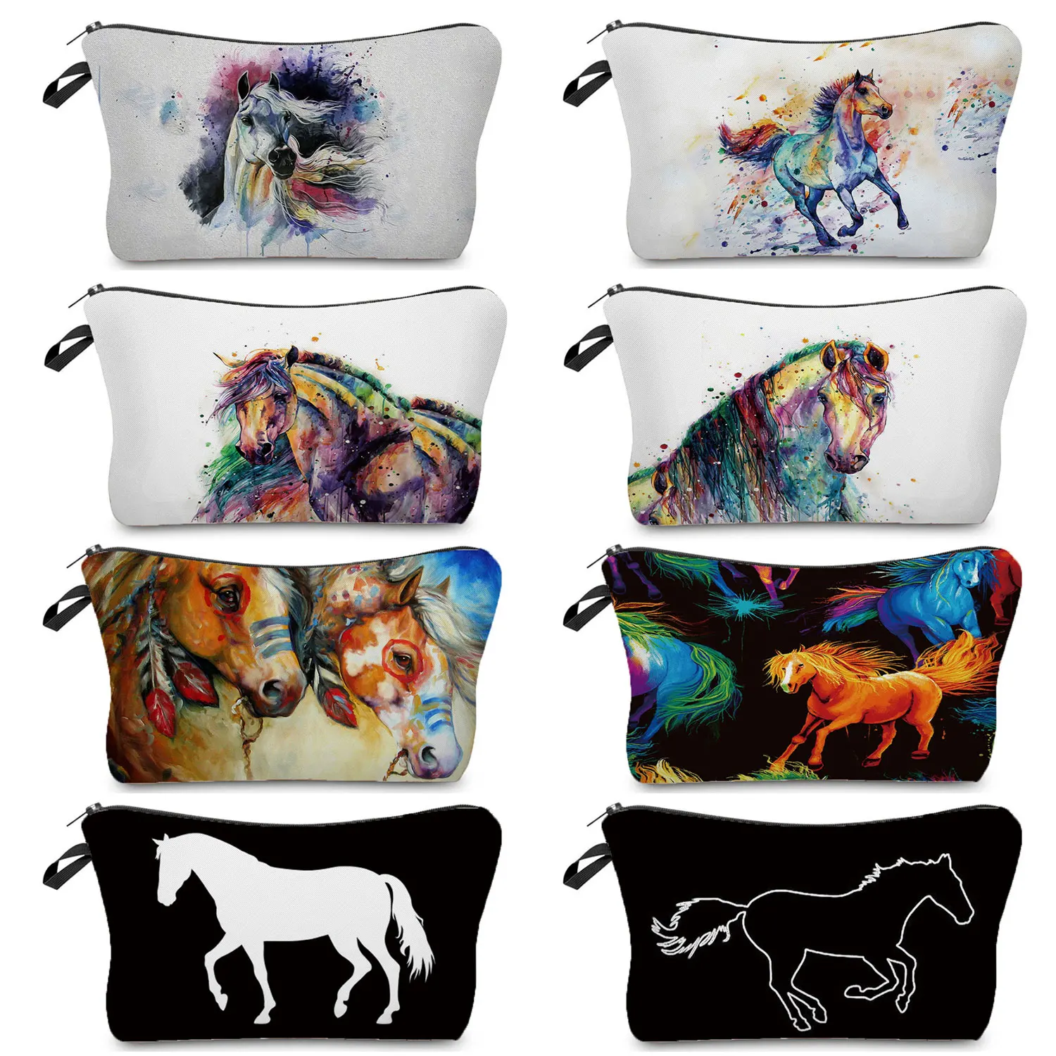 Красочные сумки для макияжа с принтом лошади для женщин вместительная сумка для туалетных принадлежностей мини практичная сумка для путешествий Сумки для косметики на день рождения с индивидуальным узором