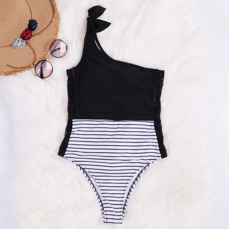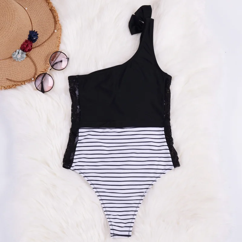 INGAGA сексуальный сетчатый Цельный купальник на одно плечо купальники женский лоскутный боди купальный костюм с пуш-ап 2022 новая пляжная одежда