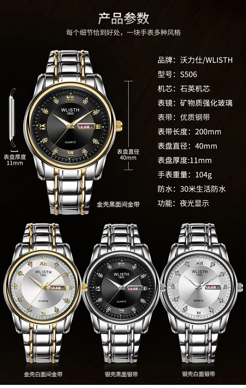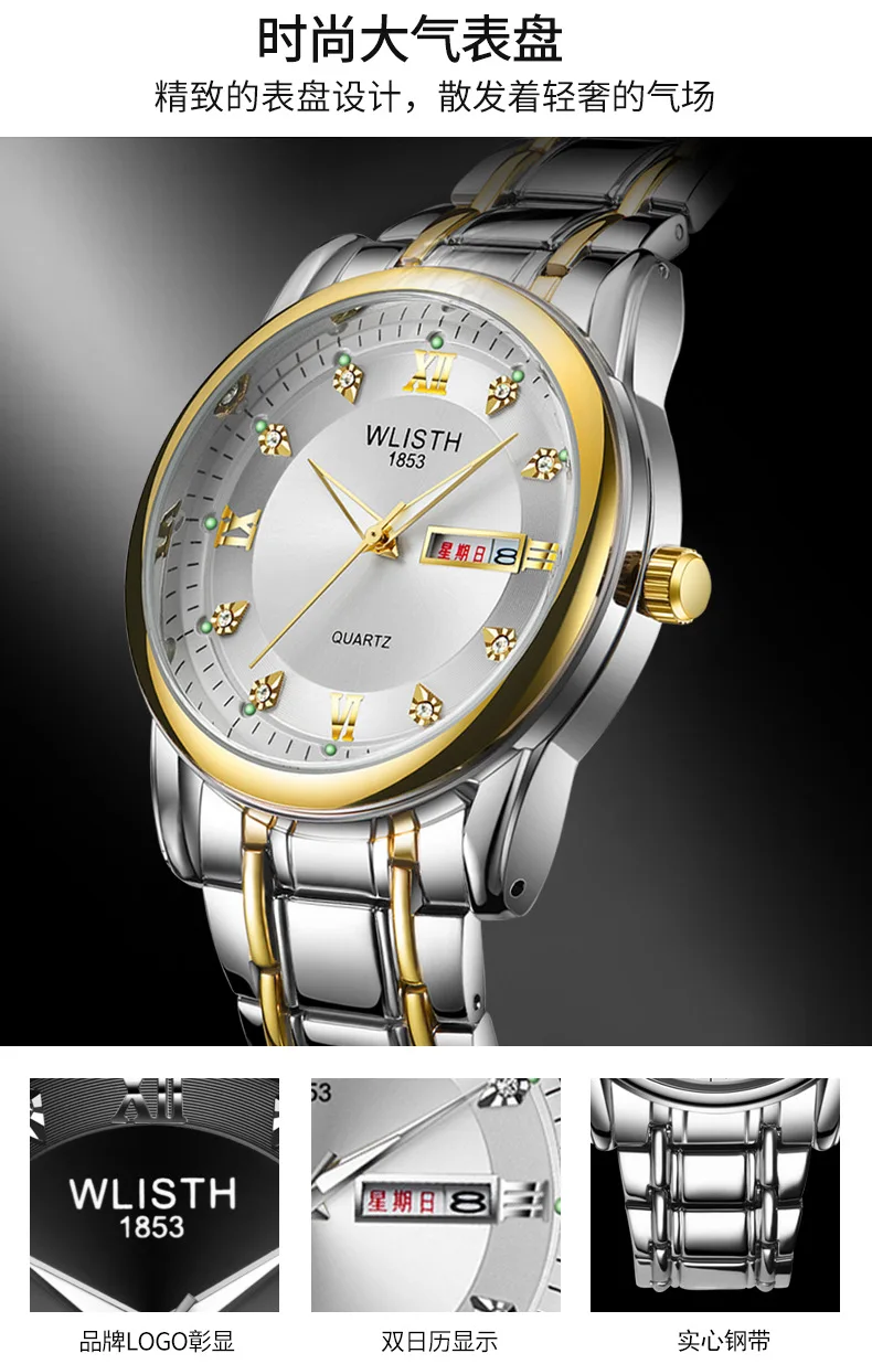 Мужские часы от ведущего бренда WLISTH, роскошные золотые, черные, ...