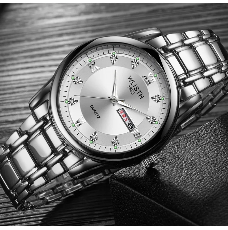 Часы наручные мужские кварцевые, брендовые роскошные классические черные деловые простые с браслетом из нержавеющей стали