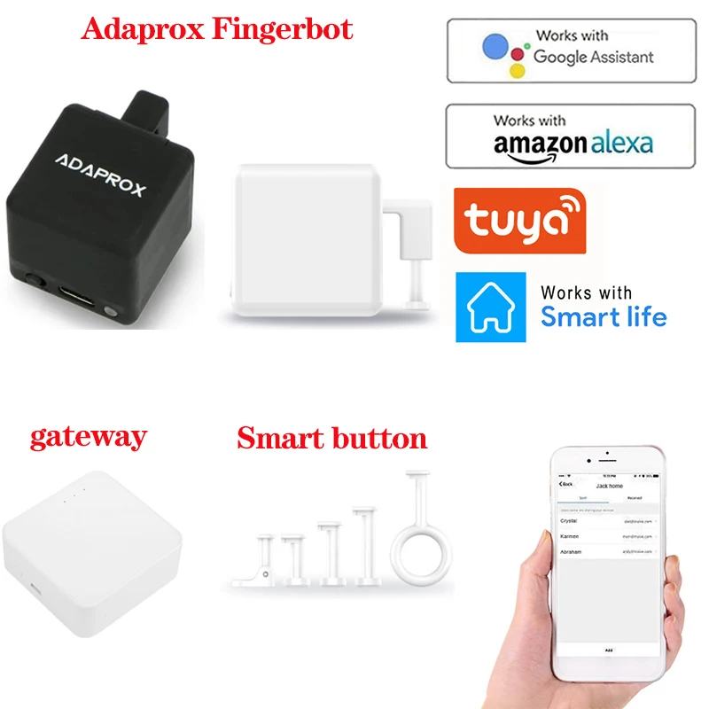 Существует также набор инструментов Adaprox Fingerbot, вы можете использовать его для работы с различными типами кнопок. Он поставляется с механическими ручками различной длины и формы.