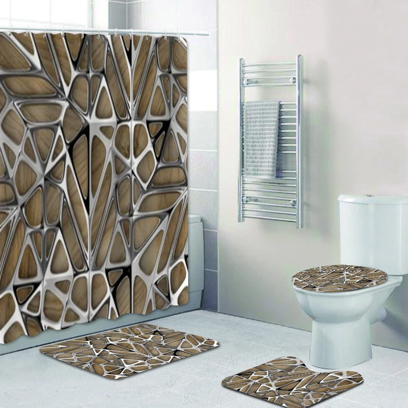 Роскошная серебристо-серая трехмерная металлическая занавеска для душа с деревянным узором, Реалистичная Геометрическая занавеска для ванной, коврики, коврики, аксессуары для туалета