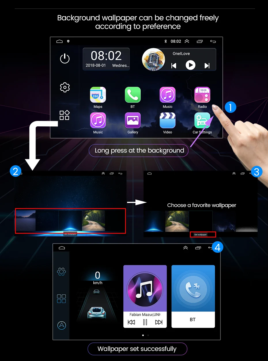 1. Устройство сначала нужно искать спутниковый успех, тогда оно обновит время 2. Как настроить рулевое колесо управления? Удерживайте кнопку на руле и нажмите значок функции на экране, чтобы соответствовать. Цвет кнопки на экране изменится после успешного совпадения.