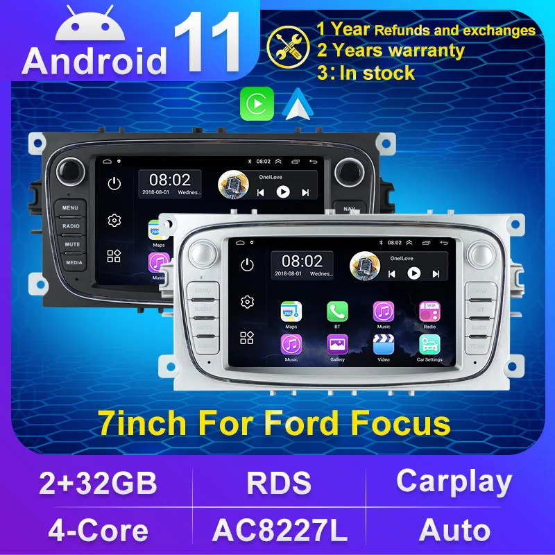 Автомагнитола 2 Din, 2 + 32 ГБ, Android 11, мультимедийный видеоплеер для Ford Focus S-Max Mondeo 9 Galaxy C-Max, навигация GPS Carplay RDS