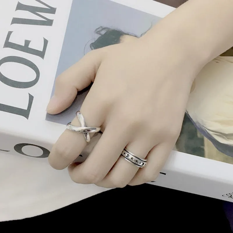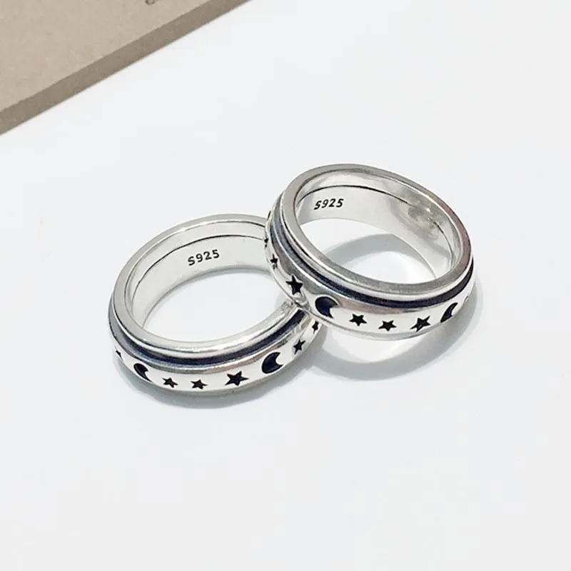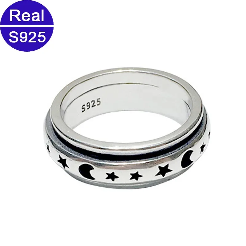 Женское Винтажное кольцо-Спиннер из серебра 925 пробы, с Луной и звездами