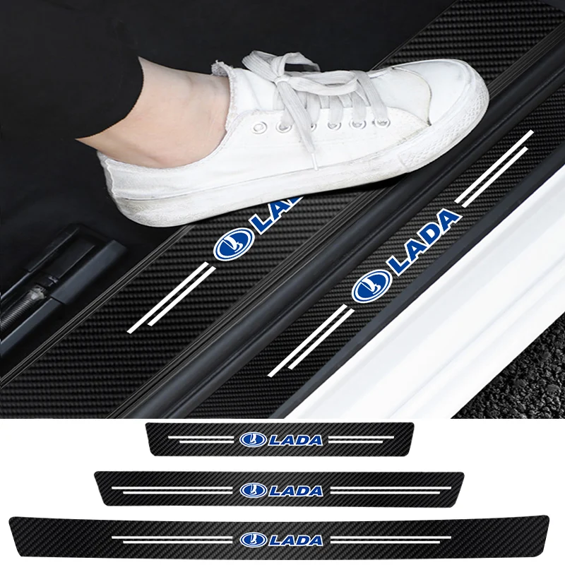 4 шт., наклейки на порог двери автомобиля, из углеродного волокна