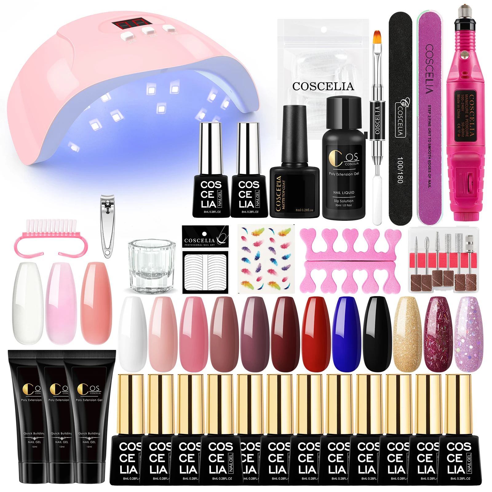 Набор маникюрных инструментов COSCELIA для наращивания ногтей, аппарат для маникюра с противоскользящим раствором, УФ светодиодная лампа, блестящие Типсы, набор инструментов для украшения ногтей