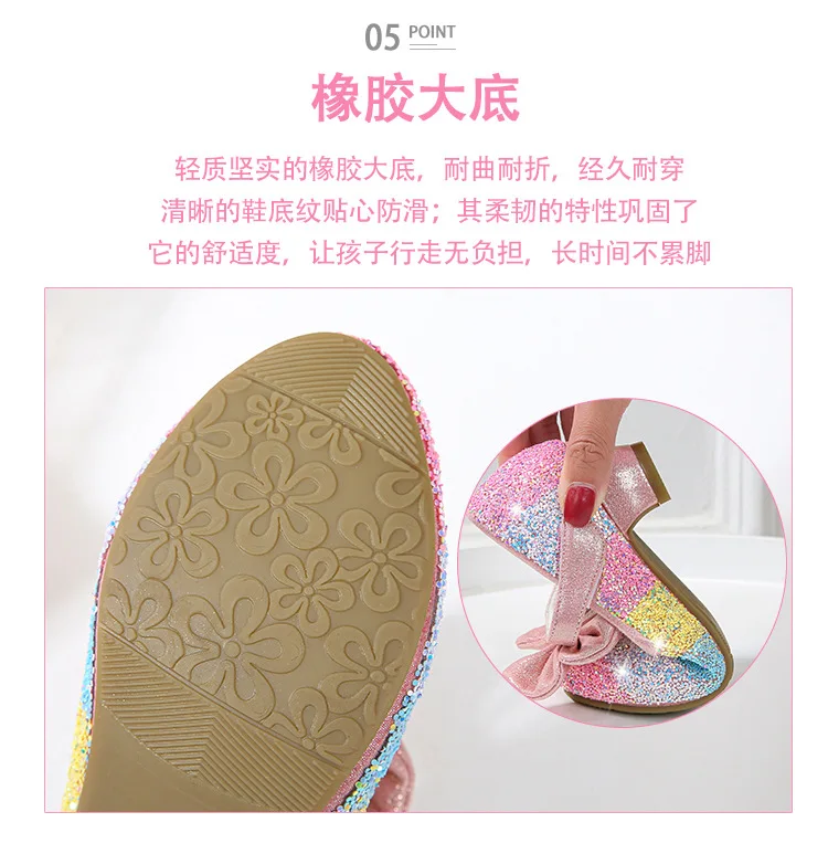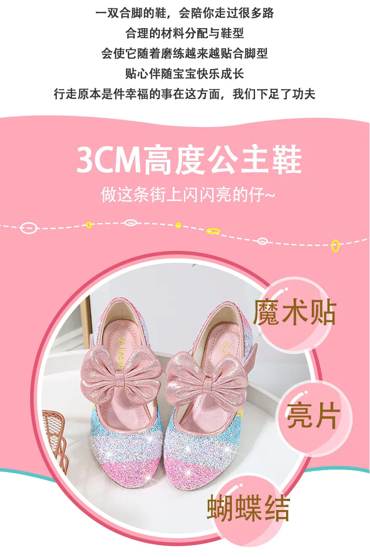 Новинка; Кожаная обувь для девочек; Обувь принцессы; Детская обувь с круглым носком на мягкой подошве; Обувь принцессы на высоком каблуке с украшением в виде кристаллов; Тонкие туфли