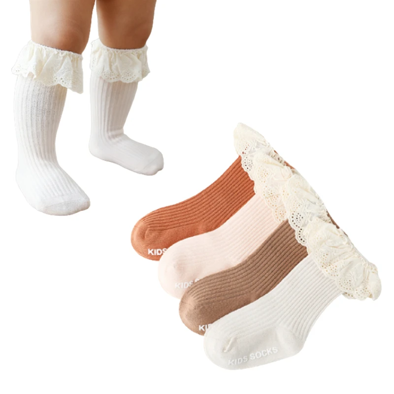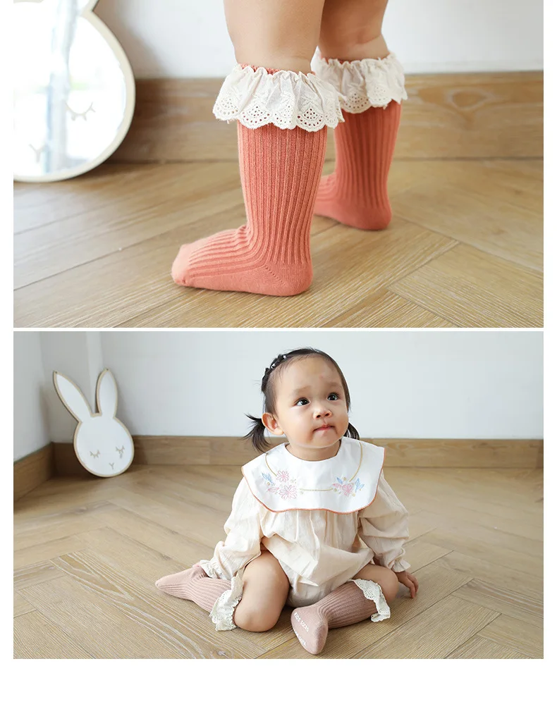Весенне-осенние детские кружевные носки для фотографий, детские гольфы для новорожденных девочек, Нескользящие хлопковые длинные носки-трубы для младенцев, малышей