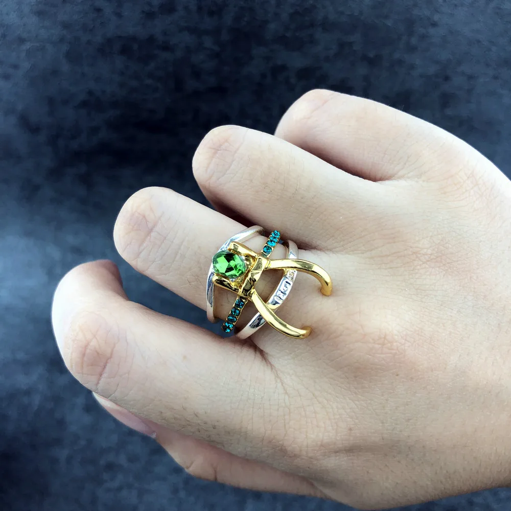 Новинка 2021, кольцо для косплея, металлическое кольцо с зелеными к...