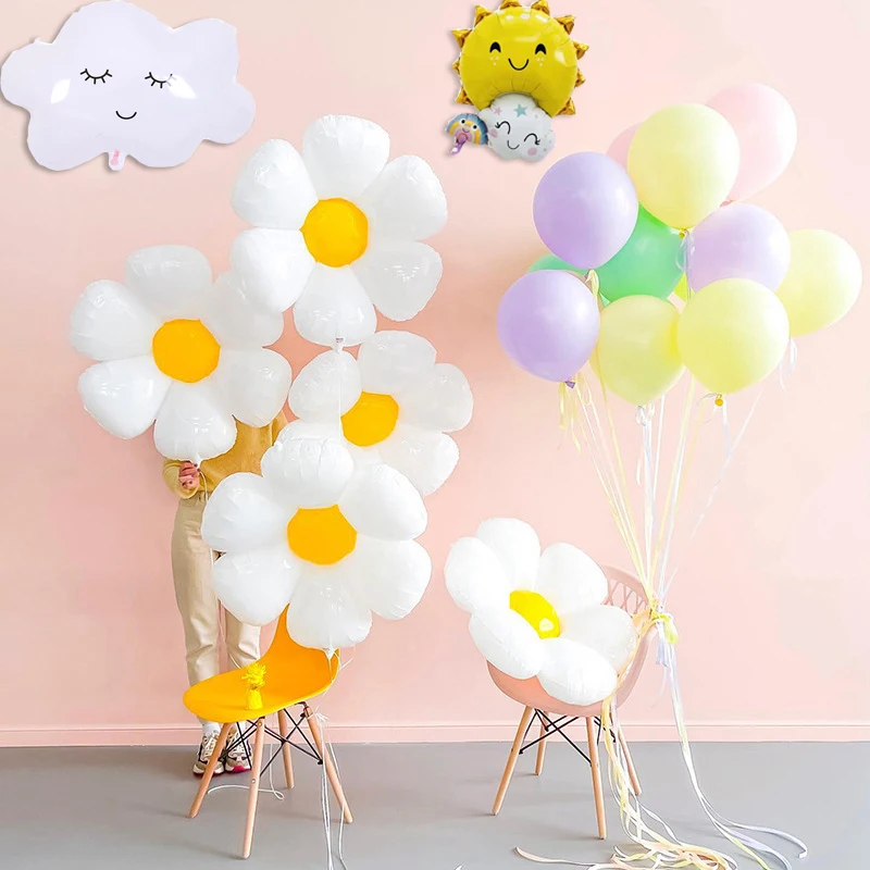 Милый белый Гелиевый шар в виде маргаритки, реквизит для фотосъемки на день рождения ребенка, яйцо, цветок, шар, украшение для свадебной вечеринки, Детская кукла