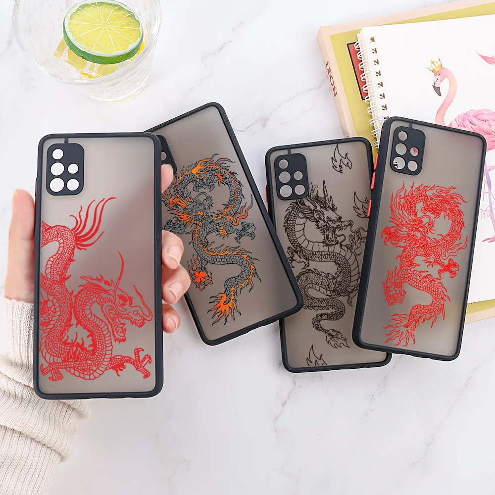 Матовый чехол с ярлыком для Samsung A52, чехол с рисунком дракона д...