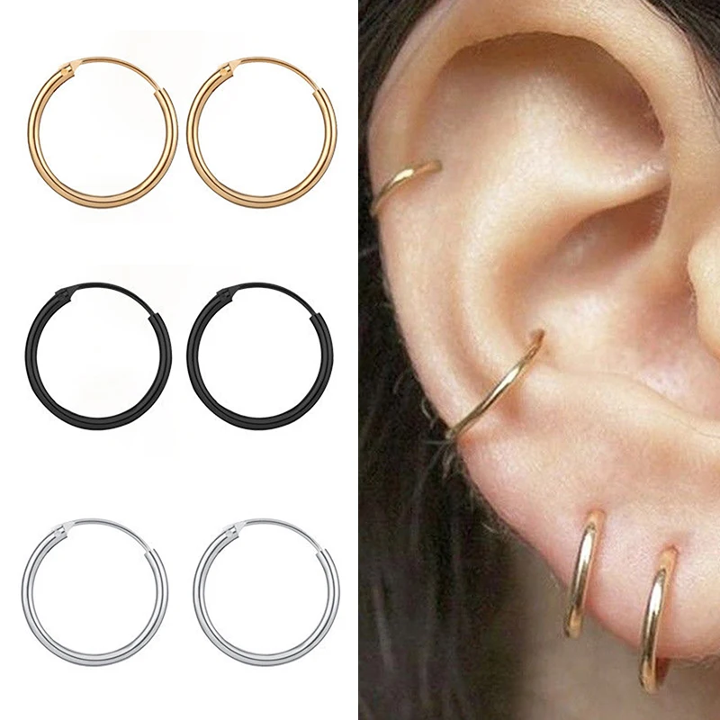 Простые круглые маленькие серьги-кольца в стиле панк, 3 размера, дл...