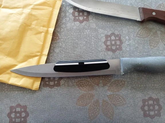 Заказ получил доставка 13 дней , это приспособление подойдёт для широких ножей а для маленьких нет.