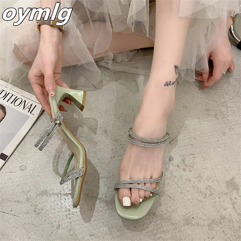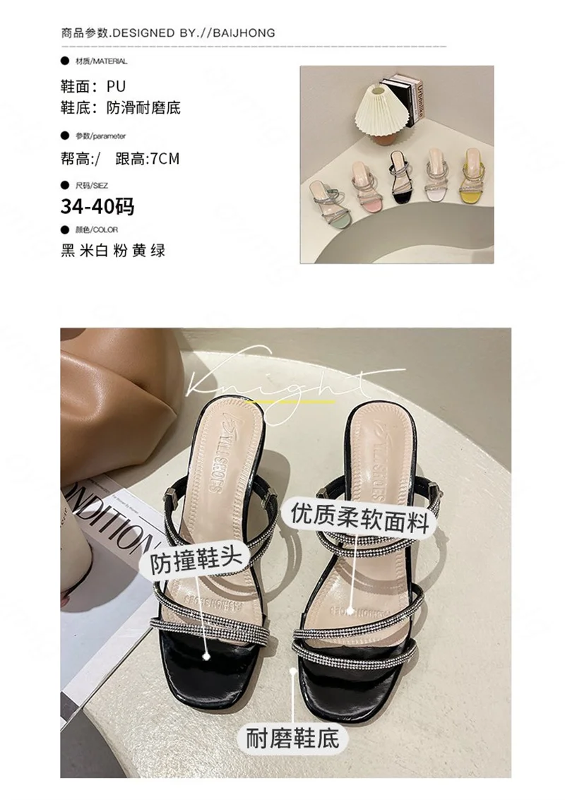 Женские шлепанцы на высоком каблуке, прозрачные сандалии с кристалл...